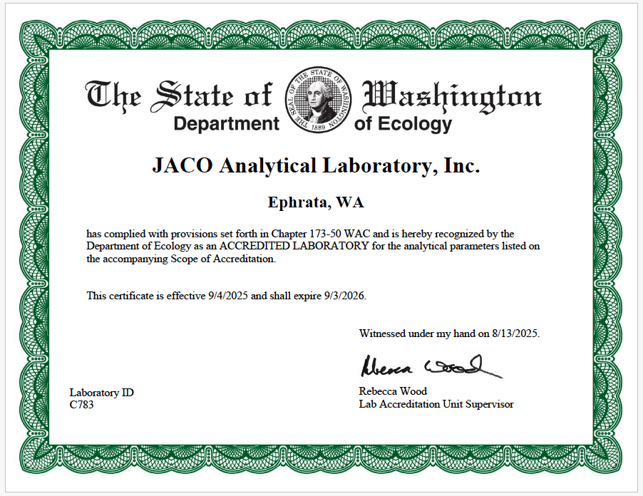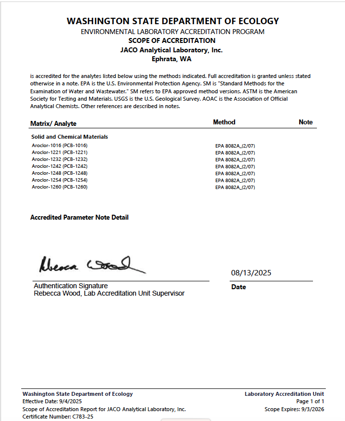 Washington PCB Certificate of Accreditation